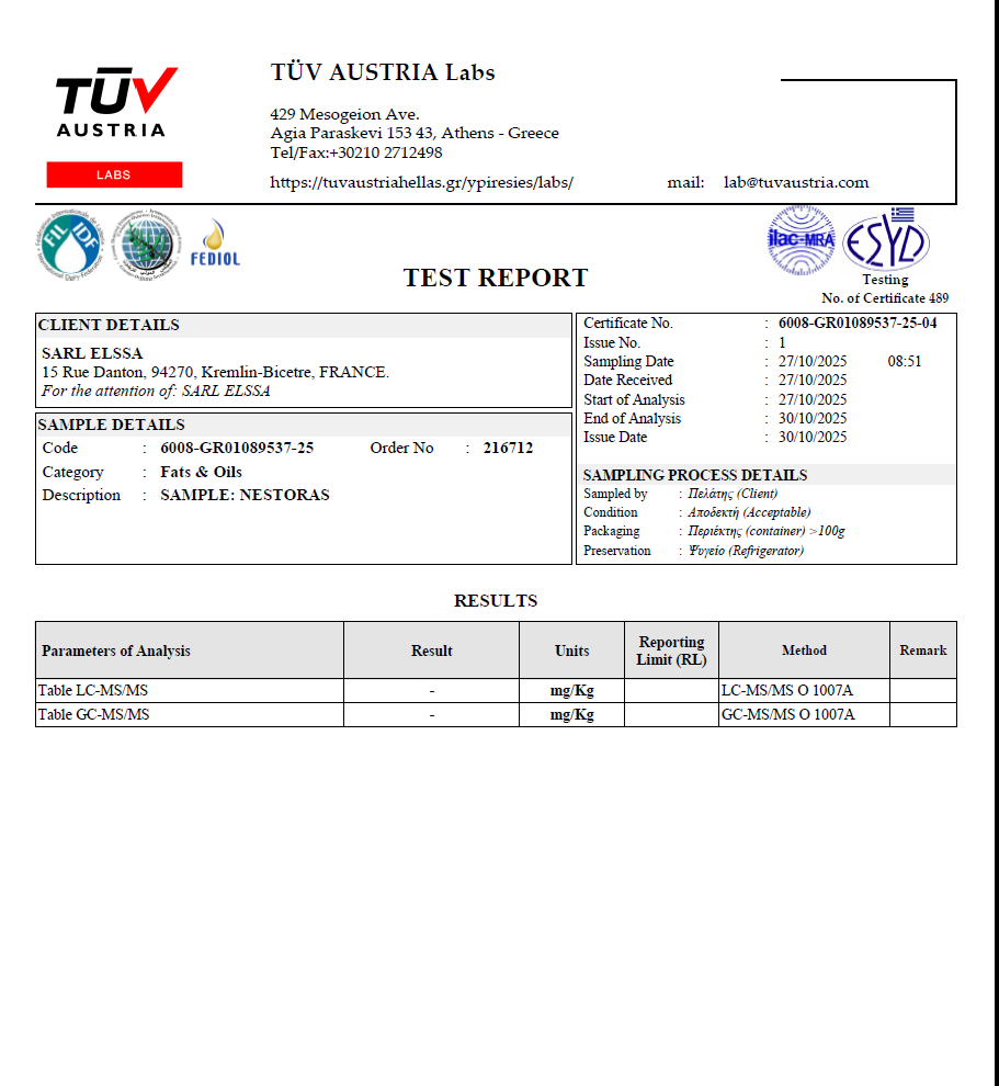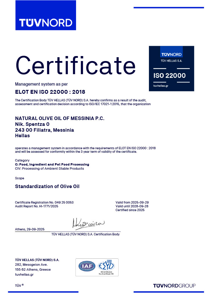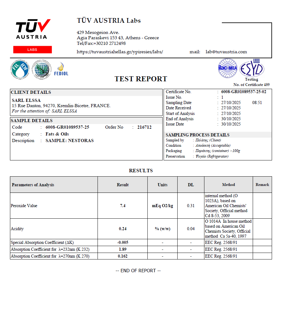 L’acidité des huiles d’olive NESTORAS est inférieur à 0,3%.