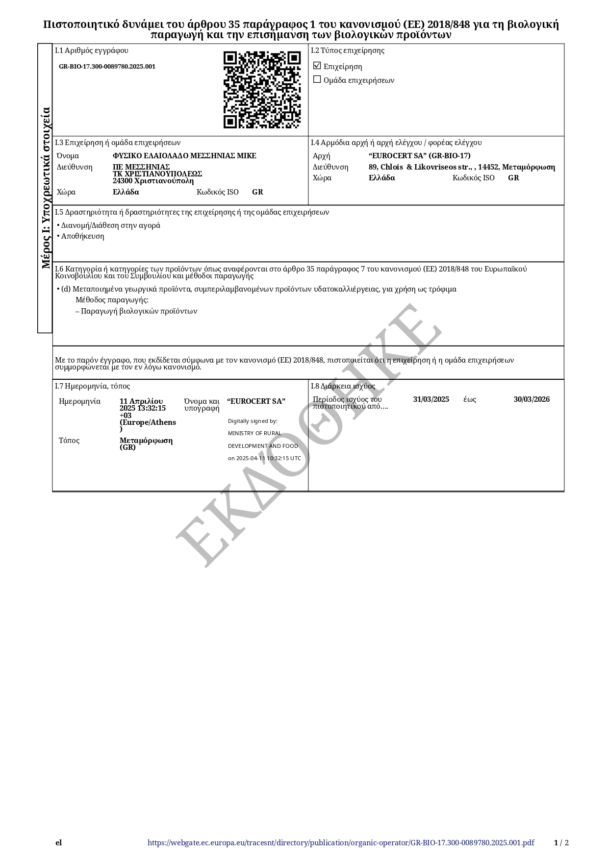L’huiles d’olive NESTORAS il est la même variété d’olive, la Koroneiki.