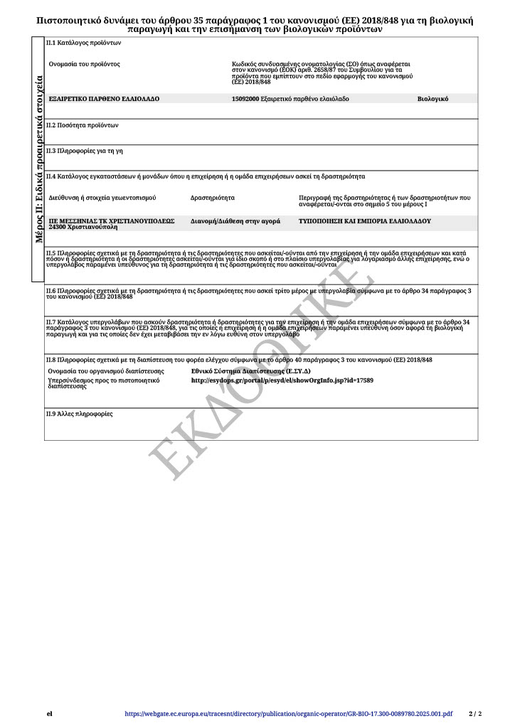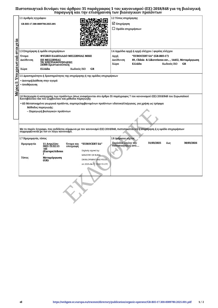 Une huile monovariétale est réalisée à partir d’une seule variété d’olive. L’huile est produite uniquement à partir de l’olive Koroneiki. Les huiles d’olive issues d’assemblages perdent souvent en saveur et en complexité.